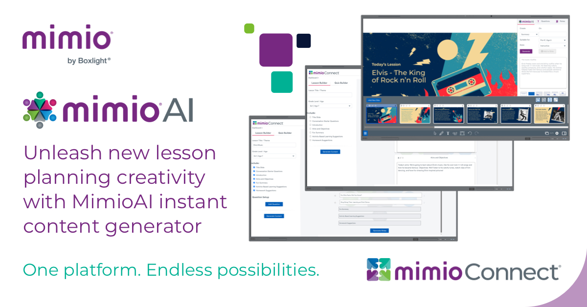 We're thrilled to introduce Mimio®AI, the latest innovation on our award-winning MimioConnect learning platform. MimioAI is set to redefine the teaching and learning experience with a focus on efficiency and customization.
